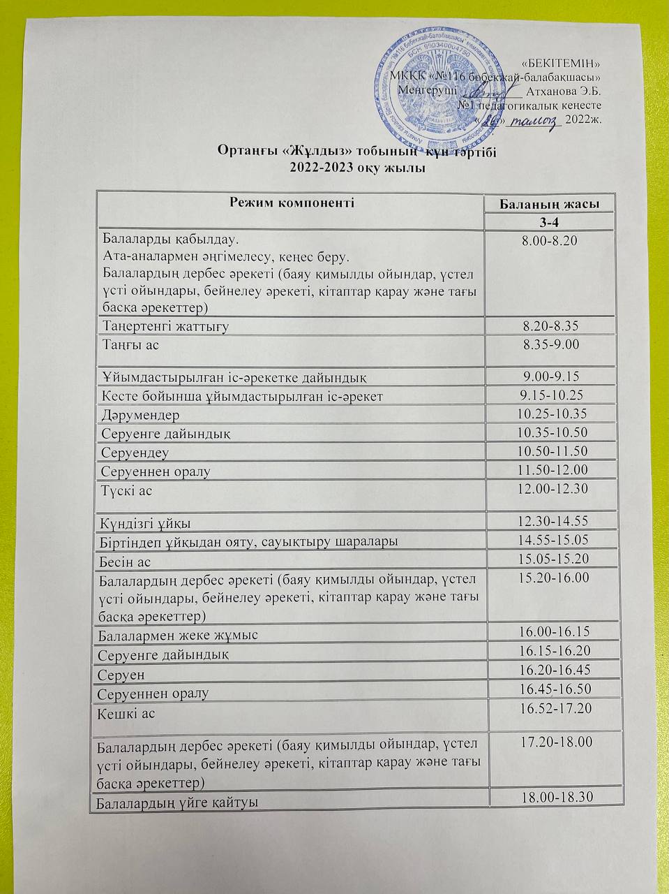 » » » ортаңғы "Жұлдыз" тобының күн тәртібі