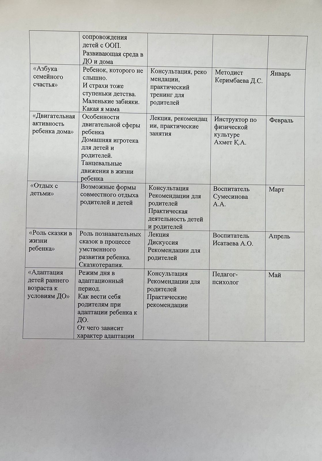 04 қыркүйек 2023 0 1 2 3 4 5 План работы консультационного пункта План работы консультационного пункта КГКП «Ясли-сад №116» для родителей детей раннего возраста, не охваченных дошкольным образованием на 2023-2024 учебный год