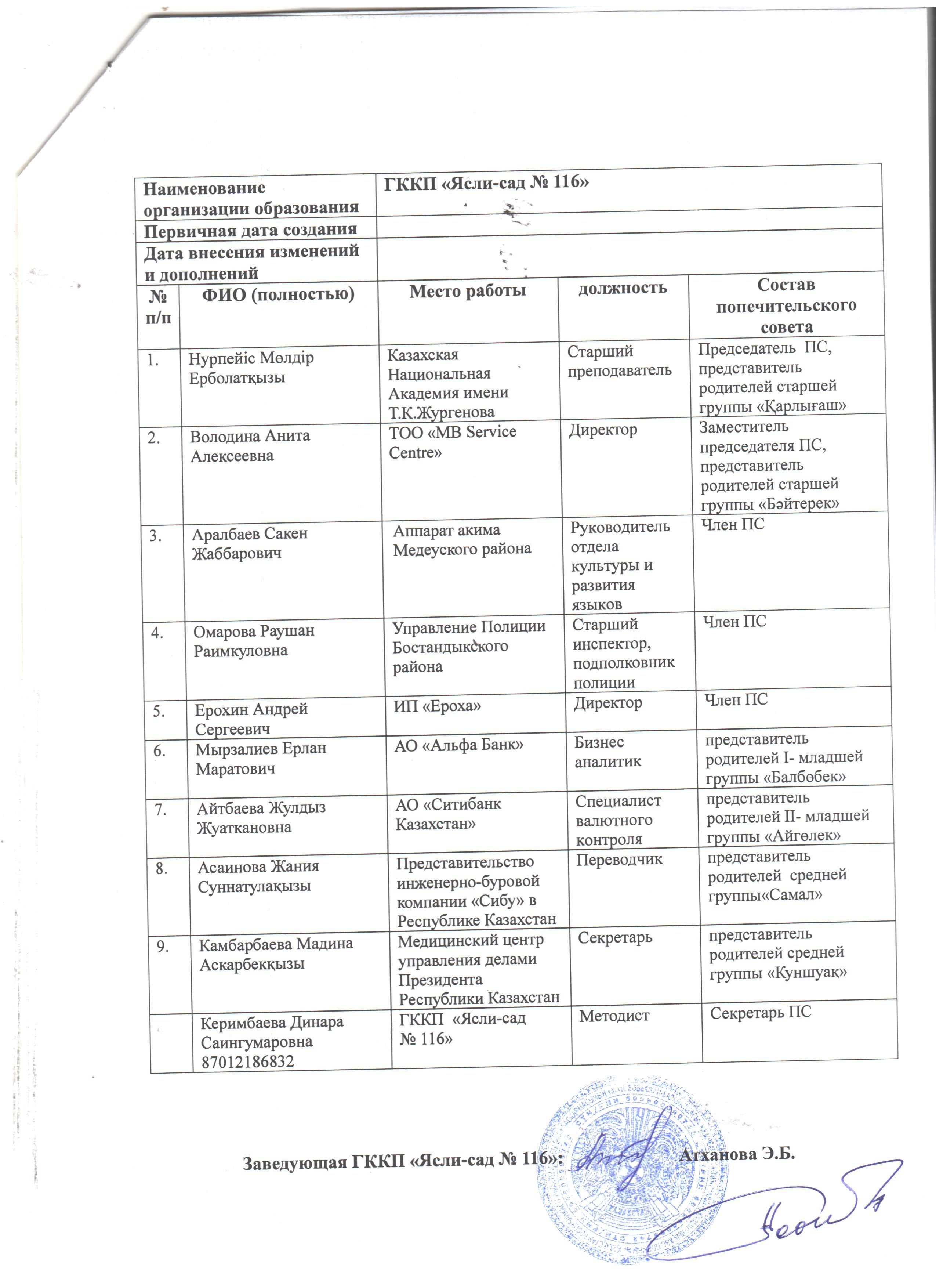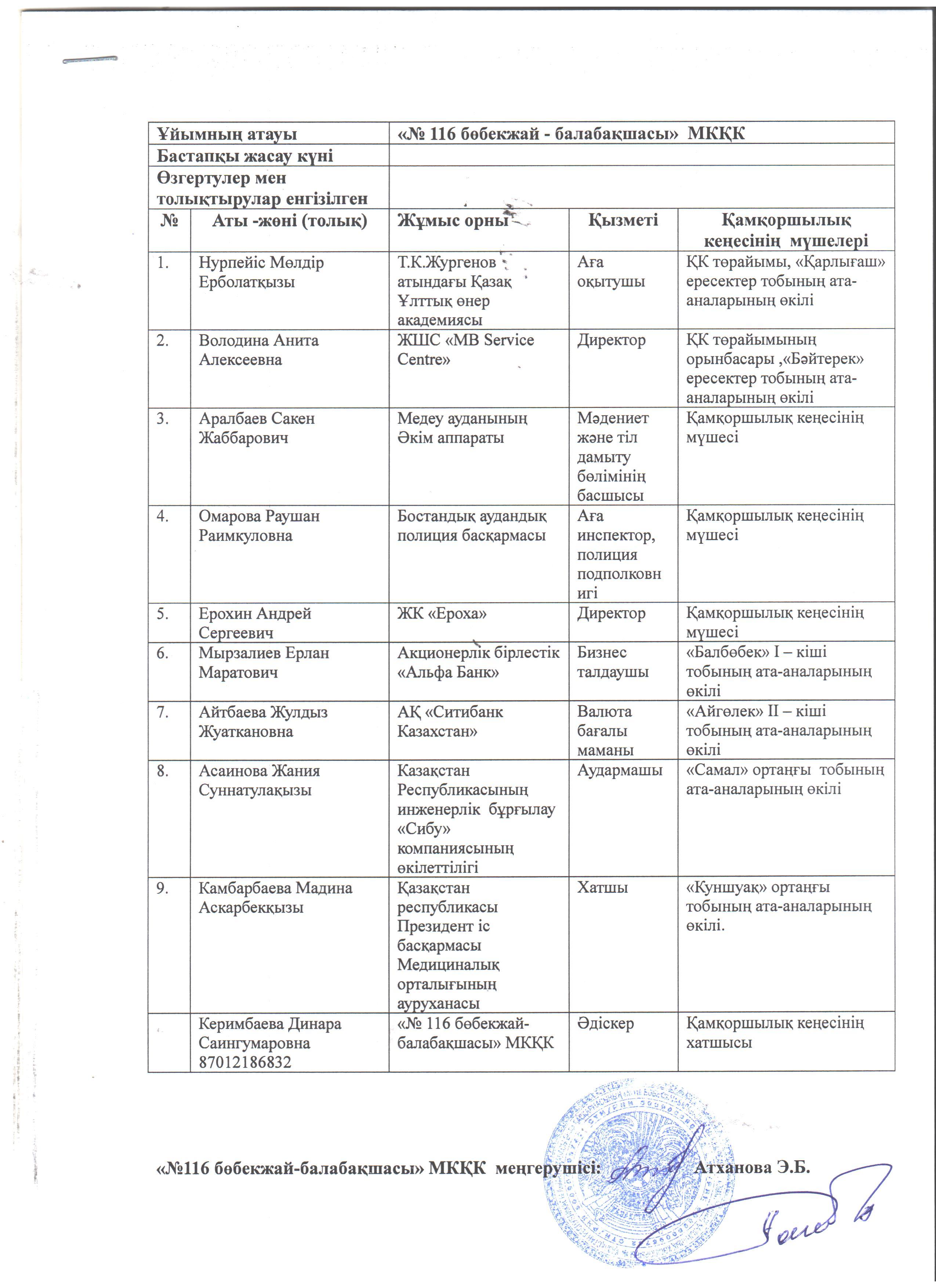 Состав попечительского совета » КГКП "Ясли сад №116"