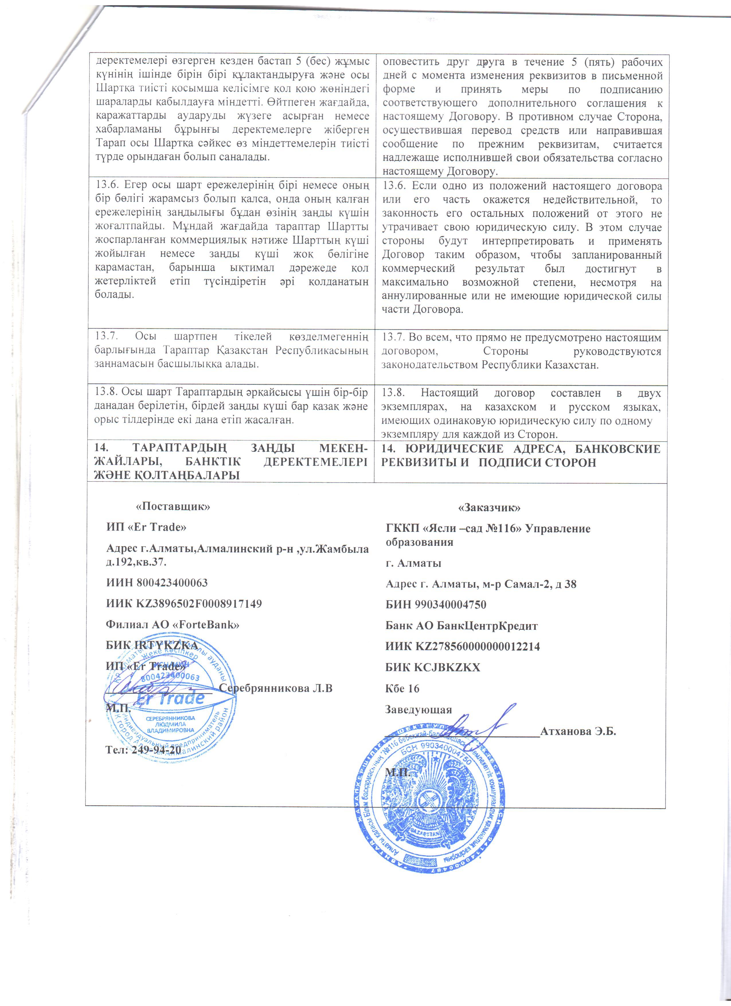Договор №2 » КГКП "Ясли сад №116"