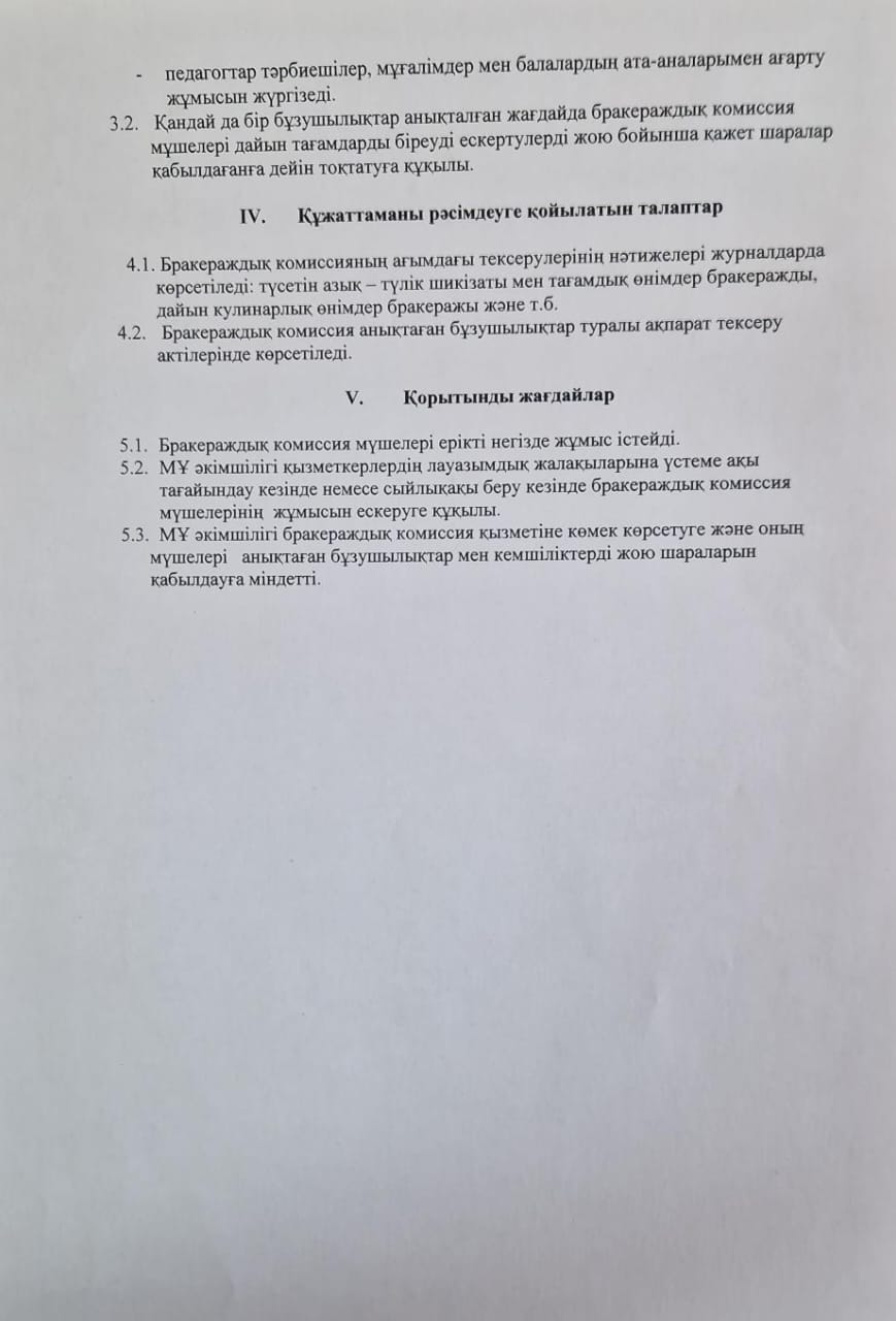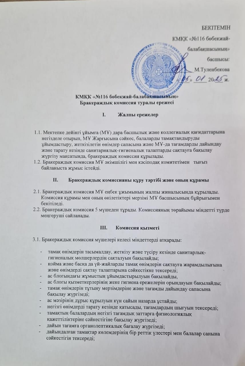 Бракеражкдық комиссия туралы ереже » КГКП "Ясли сад №116"