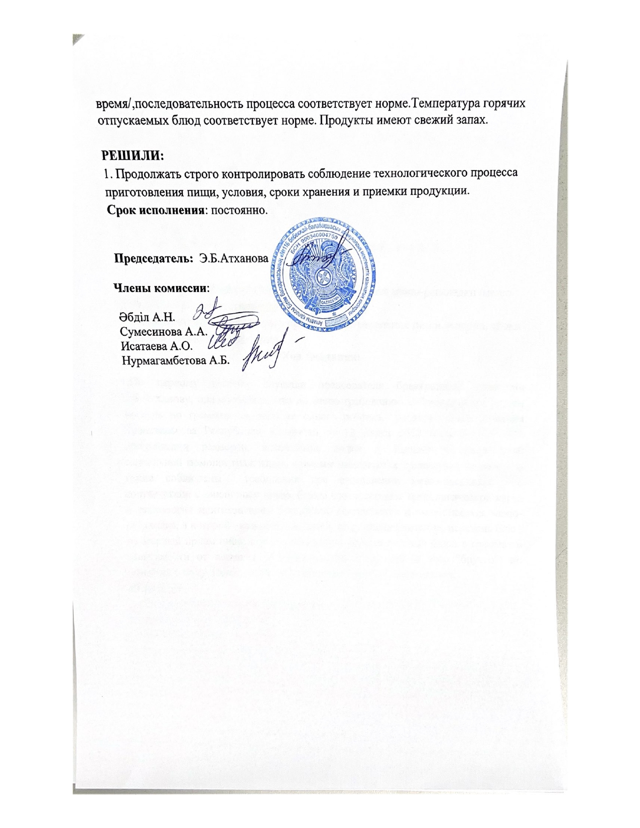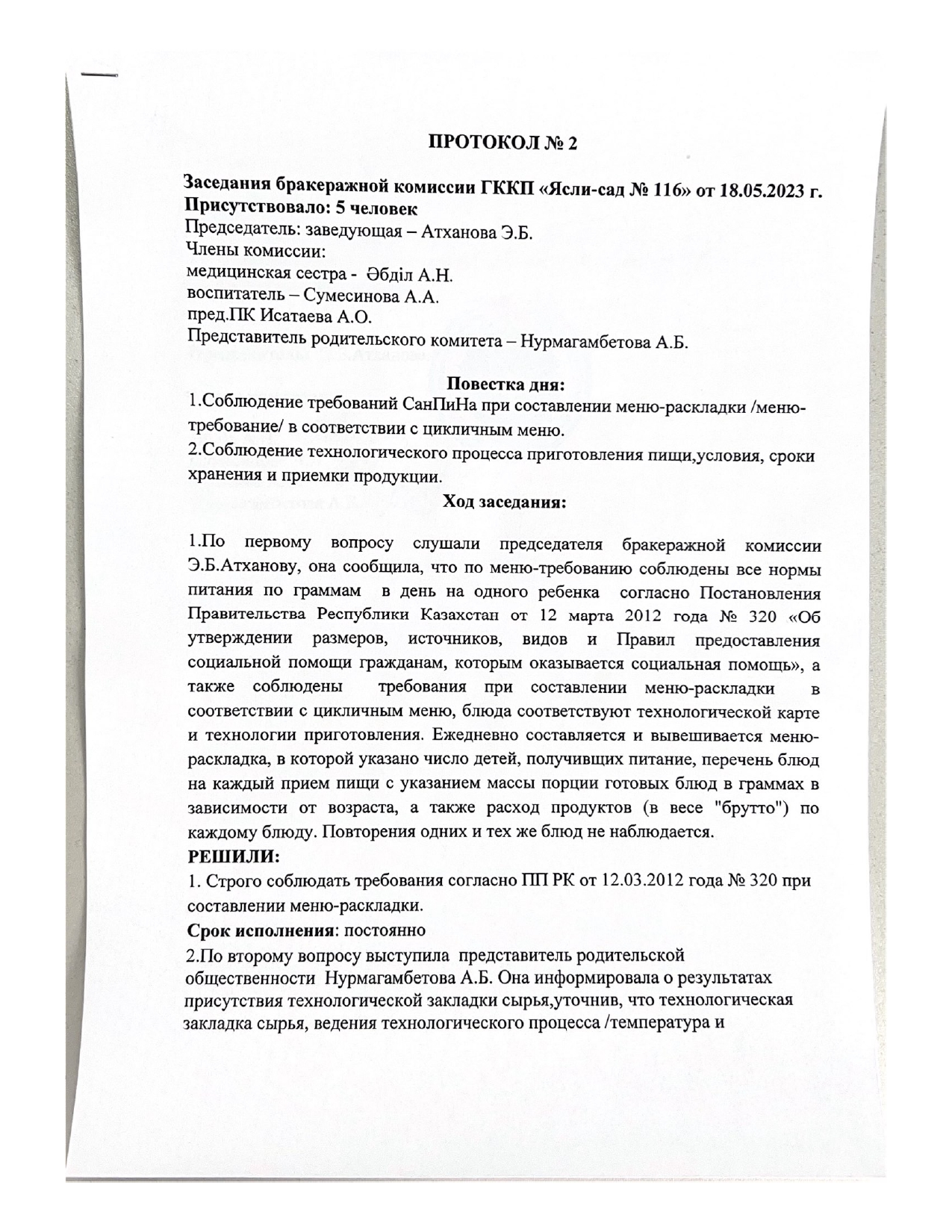 Бракераж комиссия отырысының №2 хаттамасы » КГКП "Ясли сад №116"